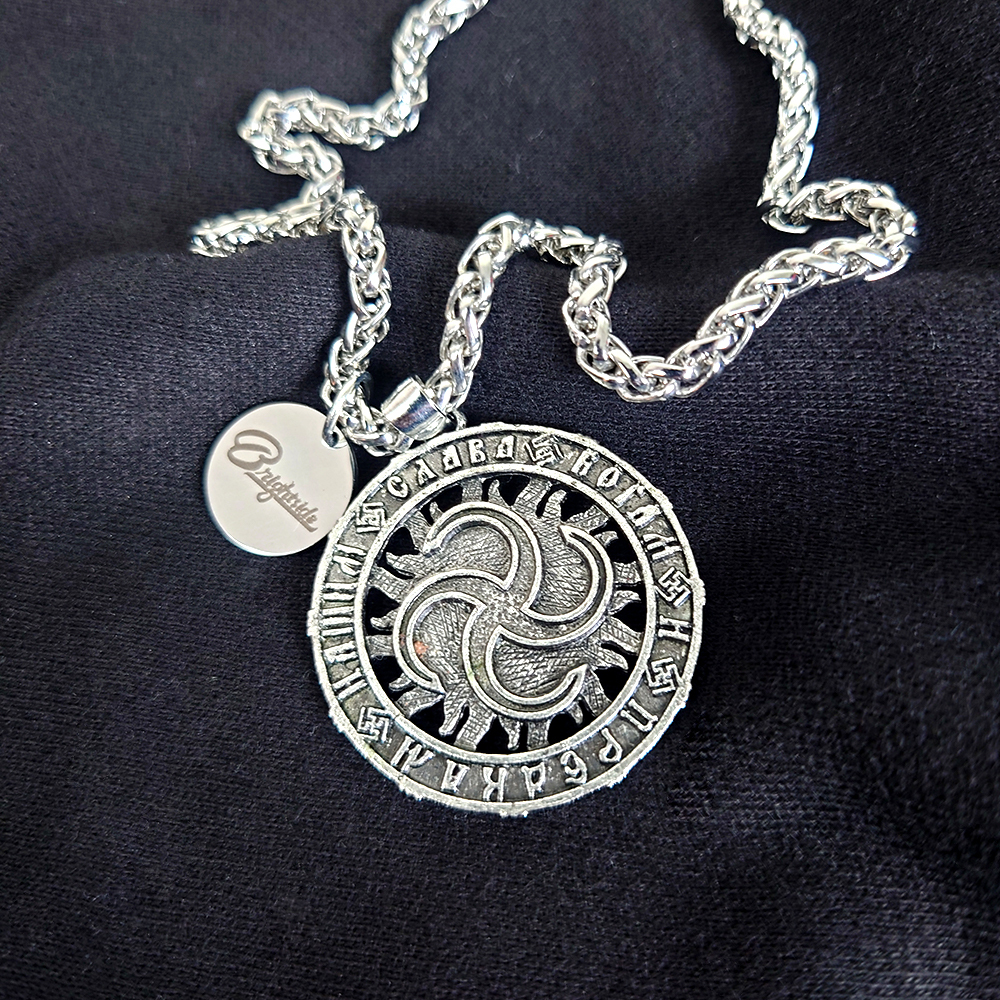 古斯拉夫神話與希臘神話跟埃及神話不同,並沒有來自信仰者的第一手文獻資料。除了口頭流傳的史詩和民歌外,目前學者只能依靠11世紀之後中西歐的基督教傳教者所撰寫的筆記,來一探斯拉夫神話的局部面貌。項鍊本體為古斯拉夫錢幣的造型設計。戴上Brightside ® 斯拉夫項鍊,彷彿拿到了通往古斯拉夫的門票,感受這古代神話的神祕氣息~